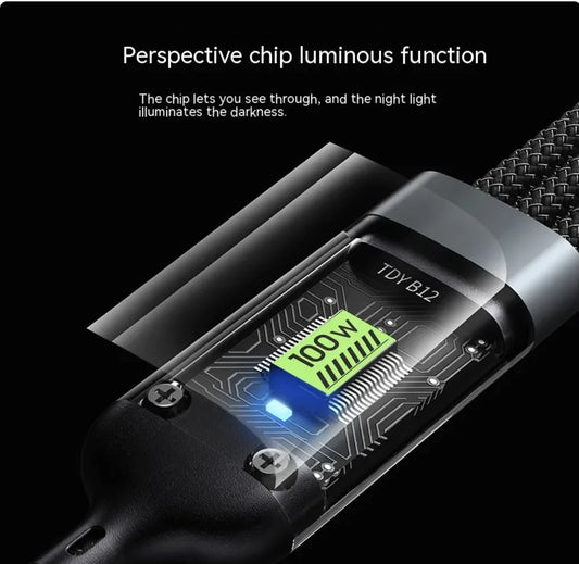 3-in-1 Mobile Phone Data Cable with Light & Super-Fast 6A Charging